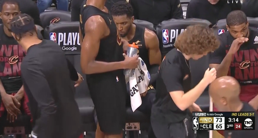 回更衣室缓了一会儿米切尔回到了替补席